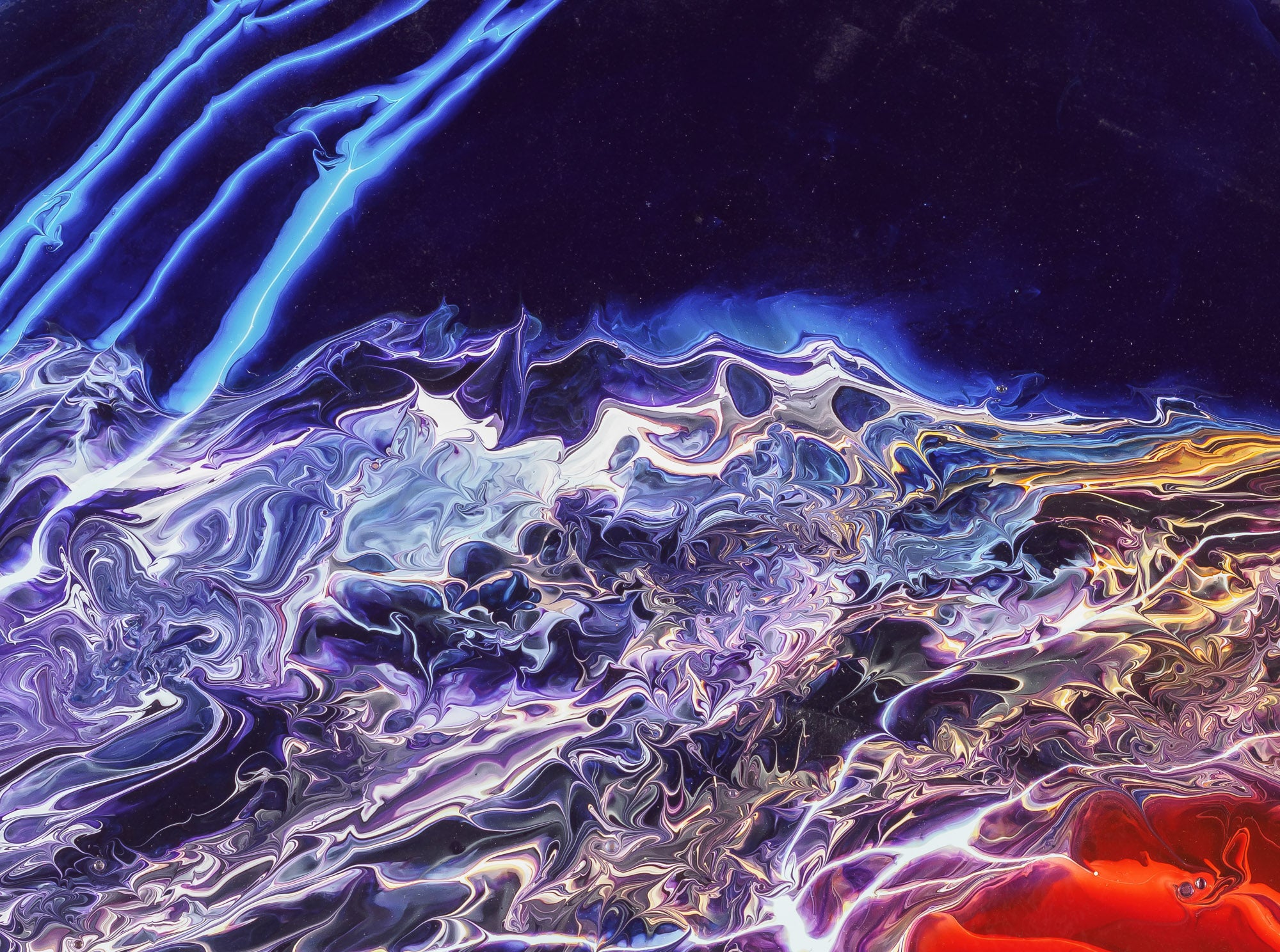 After capturing the artwork in an ultra-detailed digital file, we work together with the artist to make sure the file reproduces all the distinct colors and nuances of the original, unique acrylic pour painting. -